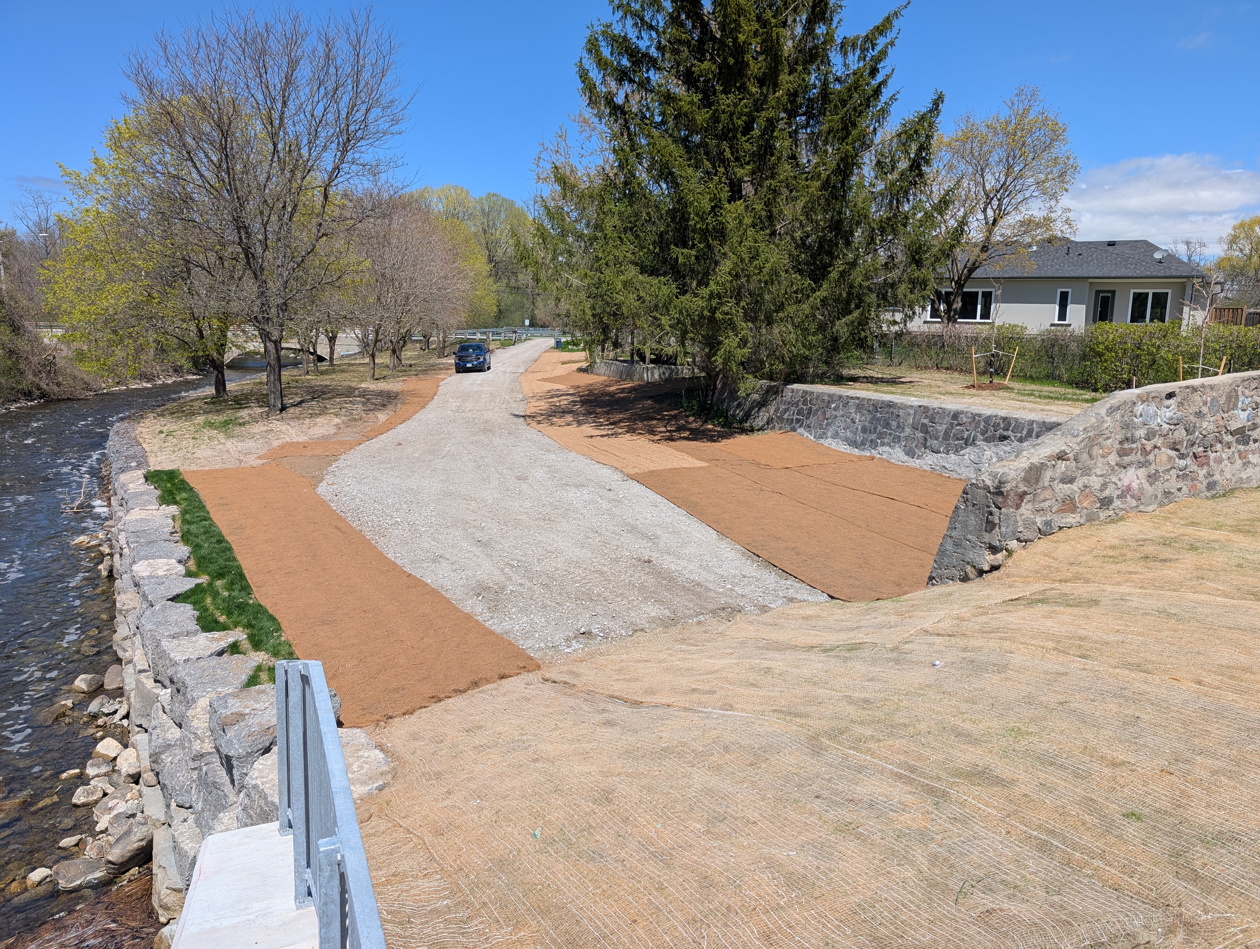 The contractor has completed all works including restoration such as topsoil, seed, and tree planting. The Pefferlaw Dam parkland can be accessed by visitors at this time. Please stay on the designated gravel pathways to allow the grass to regrow.